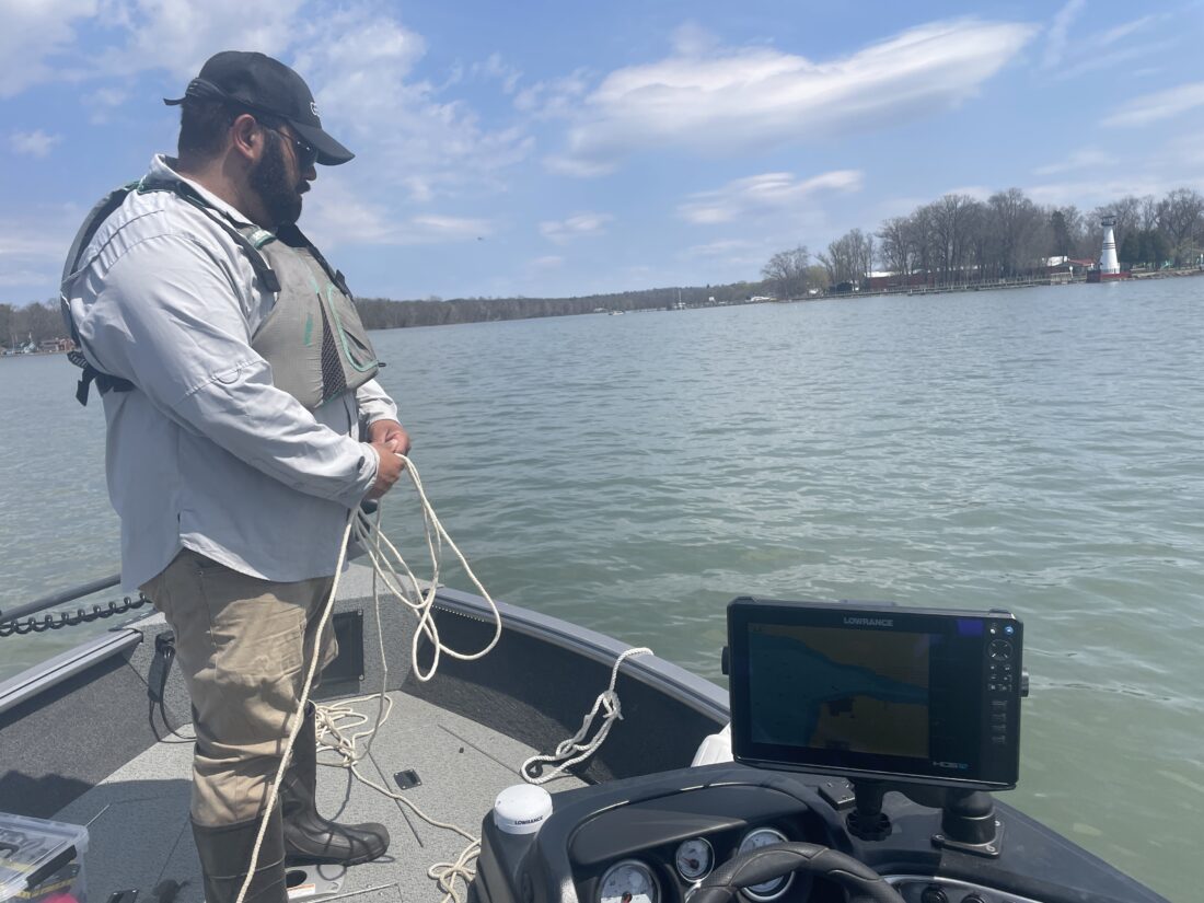 AJ Reyes of GEI Consultants tours the lower South Basin of Chautauqua Lake in 2025. Submitted file photo