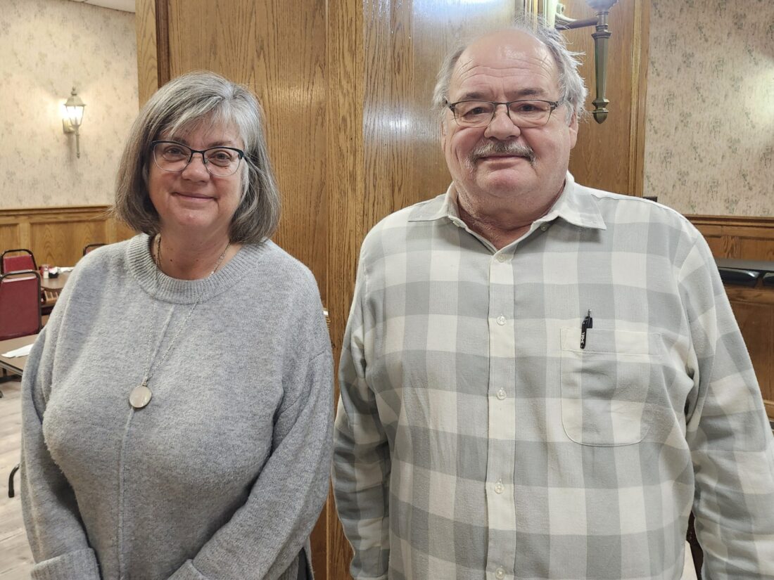 Stacey Otte-Demangate, new CEO of the Roger Tory Peterson Institute, is pictured with Mike Erlandson, Falconer Kiwanis Club president. Submitted photo