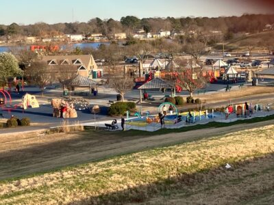 A view of a handicap-accessible playground from Mount Trashmore in Virginia Beach. A large portion of the park is located on the top of a 60-foot high landfill.
