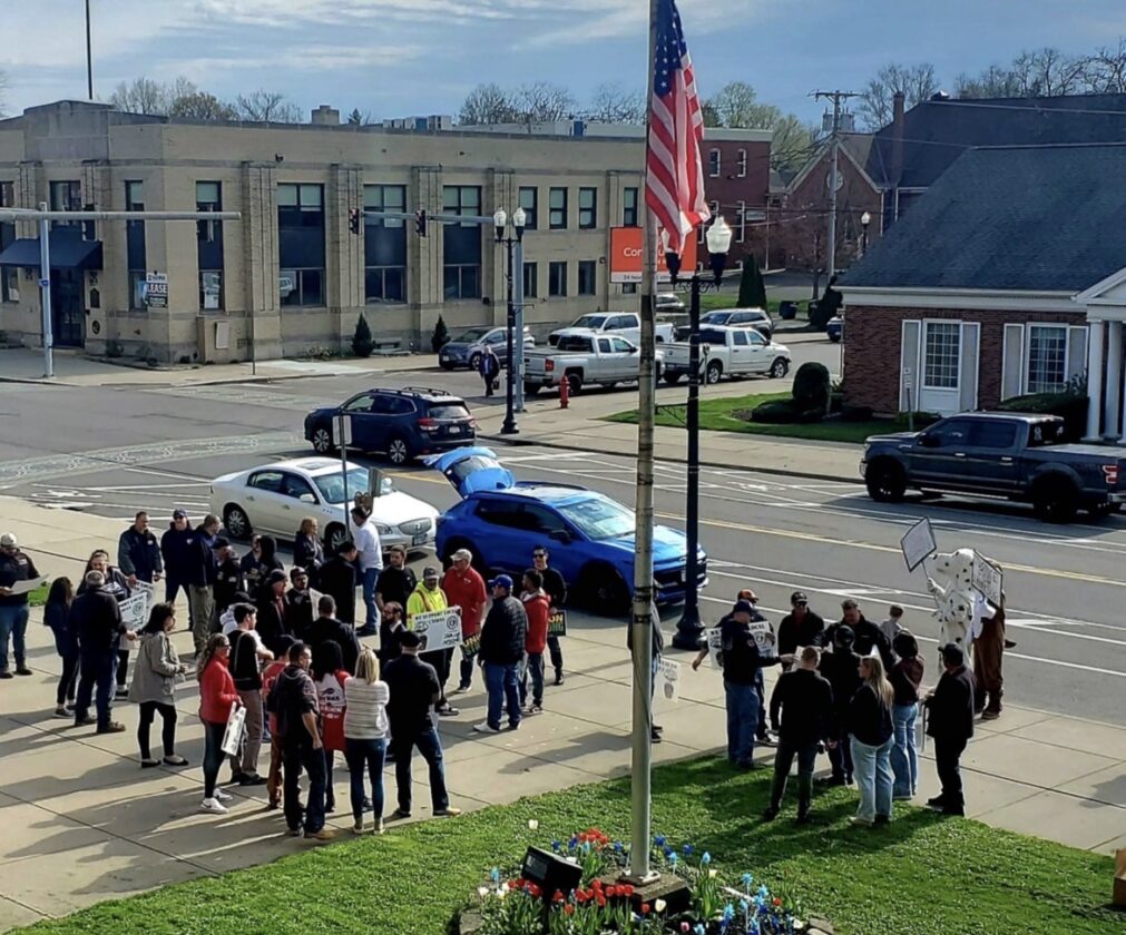 Union members rally Tuesday night outside Dunkirk City Hall. Submitted photo
