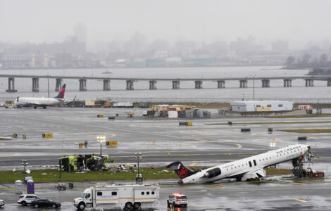NEW YORK (AP) — An Air Canada jet carrying more than 70 passengers collided with a fire truck while landing at New York's LaGuardia Airport late Sunday, killing the pilot and copilot and injuring several others, officials said.