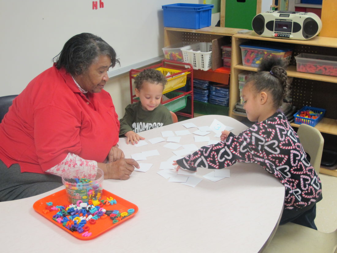Grandma Abbie Jones, a “foster grandparent,” facilitates a learning activity with PACT program students. Jones is a part of the Foster Grandparent Program P-J photo by Katrina Fuller