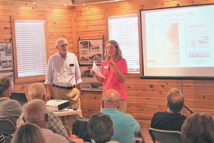 BEMUS POINT — Inside the Lawson Center in Bemus Point, Tom Erlandson gave a lecture on the history of Chautauqua Lake, the same lake behind him that was only separated by the Lawson Center walls.