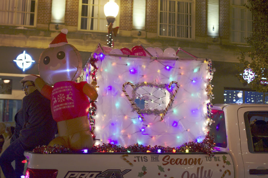 This year’s Candy Land Christmas Parade and Holiday Celebration that ran through Third Street down to City Hall featured dragons and other creative decor on floats, marching bands, light-up toys and fun hats, families rolling their children in little red wagons, kids playing in the remnants of the recent winter storm, live music, plenty of fireworks, and plenty of cotton candy and popcorn one could expect at a parade of this size.