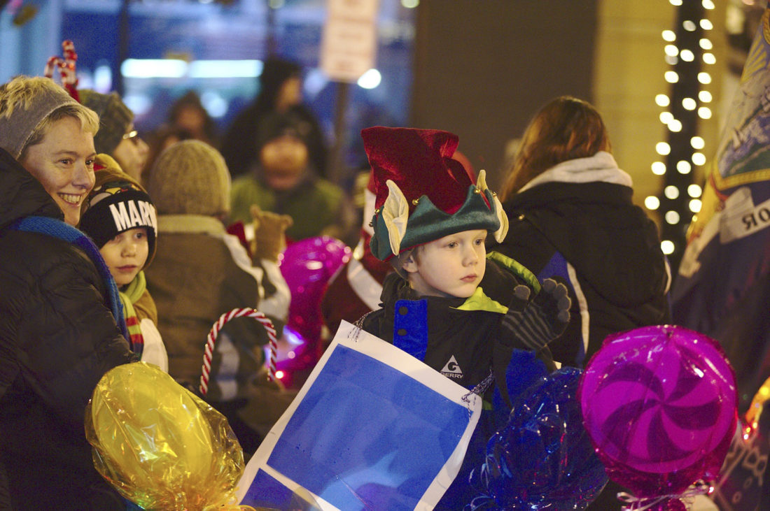 People line Third Street to watch the Christmas parade Friday in Downtown Jamestown. Photos Daryl Simons Jr.