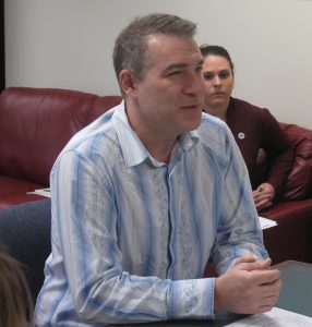 Cory Clark, Megalomania LLC. owner, discussing his idea of starting the brewery with the IDA. P-J photo by Dennis Phillips