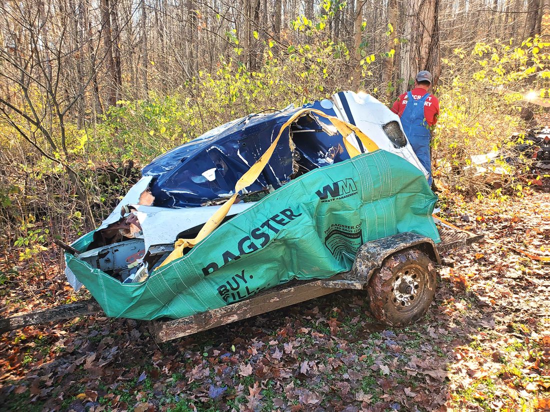 Salvage crews on Wednesday removed portions of the plane that crashed Sunday evening near the Chautauqua County-Jamestown Airport. The debris is being transported to Tennessee as part of an investigation by the National Transportation Safety Board. Photos by Dan Kohler