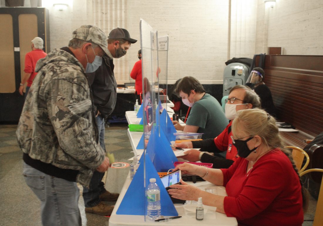 “It’s been busy,” he said. “When we opened at 6, there were 20 people lined up. If you used your voter ID or license, that sped things up. That was new this year for a general election. But that was the first time we’ve used it.”