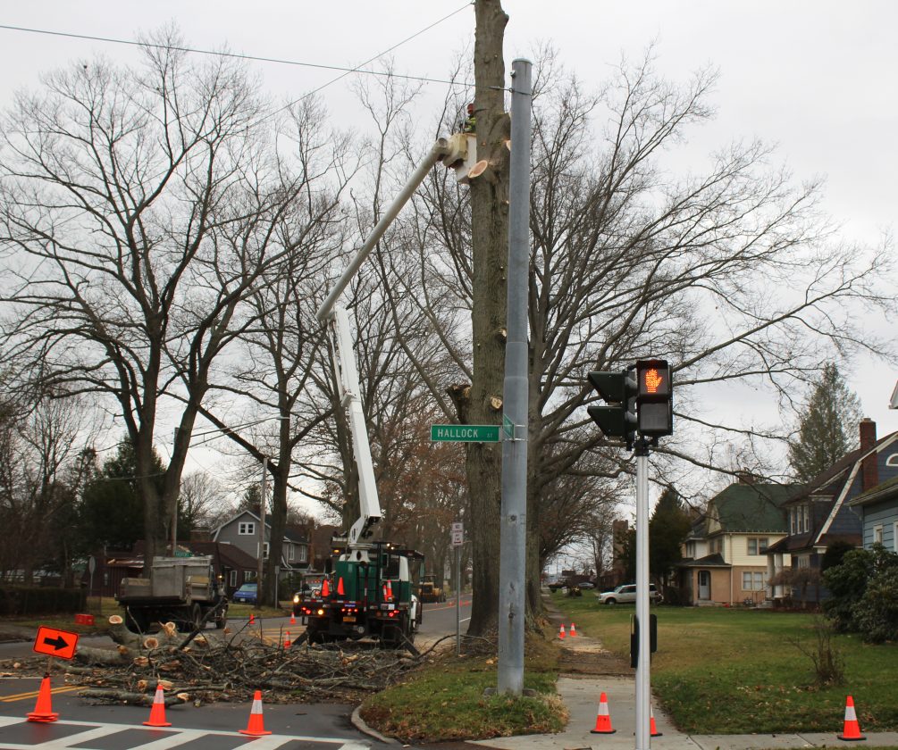 City of Jamestown Parks Department employees have begun to cut down the “Cathedral Oaks” along West Third Street.