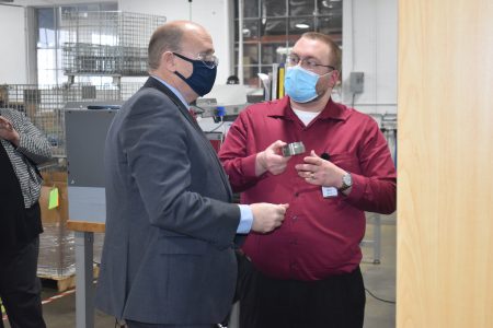 Meeting with Rand employees for a tour of the Falconer facility, which includes advanced robotics production, Reed sought feedback from president and CEO Kurt Grimm on the company’s performance during the pandemic and the effectiveness of economic relief such as the Paycheck Protection Program.