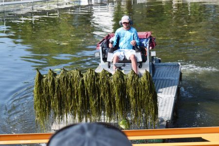 - Chautauqua Lake Association crews and Mobitracs from the town of Chautauqua have coordinated on the cleanup of aquatic plants and debris this summer, including last week’s efforts in Bemus and North Harmony. P-J photo by Jay Young