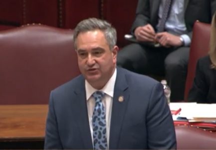 Sen. George Borrello is pictured during state Senate debate Friday defending an amendment to make Kendra’s Law permanent.