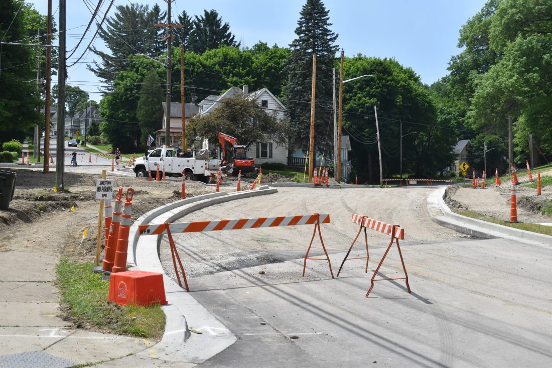 Pictured Wednesday afternoon is the intersection of Baker Street and Barrett Avenue in Jamestown. Following a redesign, the intersection could reopen to traffic within the next couple of weeks. P-J photo by Eric Tichy