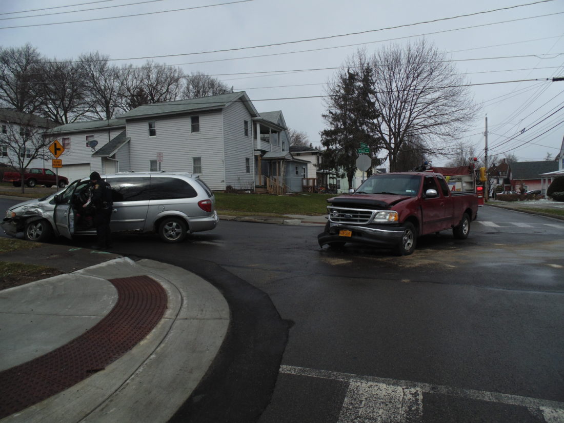 An accident at the South Main Street and Cole Avenue intersection in Jamestown resulted in minor injuries Friday morning. The incident, which took place around 11:40 a.m., occurred when a silver Dodge van traveling on South Main Street pulled out in front of a maroon Ford heading up Cole Avenue. The female driver and passenger in the silver van were treated on scene by Alstar EMS with minor injuries. The older male in the truck appeared unharmed. The van’s corner panel suffered damage while the front of the truck had extensive damage. The Jamestown Police Department and Jamestown Fire Department assisted at the scene.
