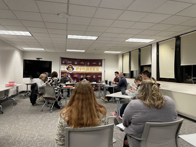CLYMER — With the merger feasibility study officially underway for Clymer, Sherman and Panama Schools, a meeting between the three school board presidents was held recently to discuss technicalities and the upcoming community survey at the end of the month.