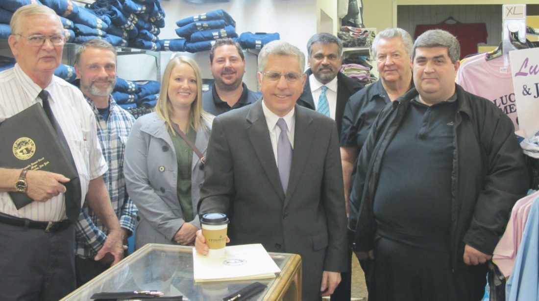 On Friday, Jamestown Mayor Sam Teresi and city business owners gathered at Lander’s Men’s Store, located at 215 N. Main St., to promote the upcoming Small Business Saturday, which is held annually the Saturday following Thanksgiving.