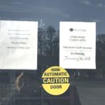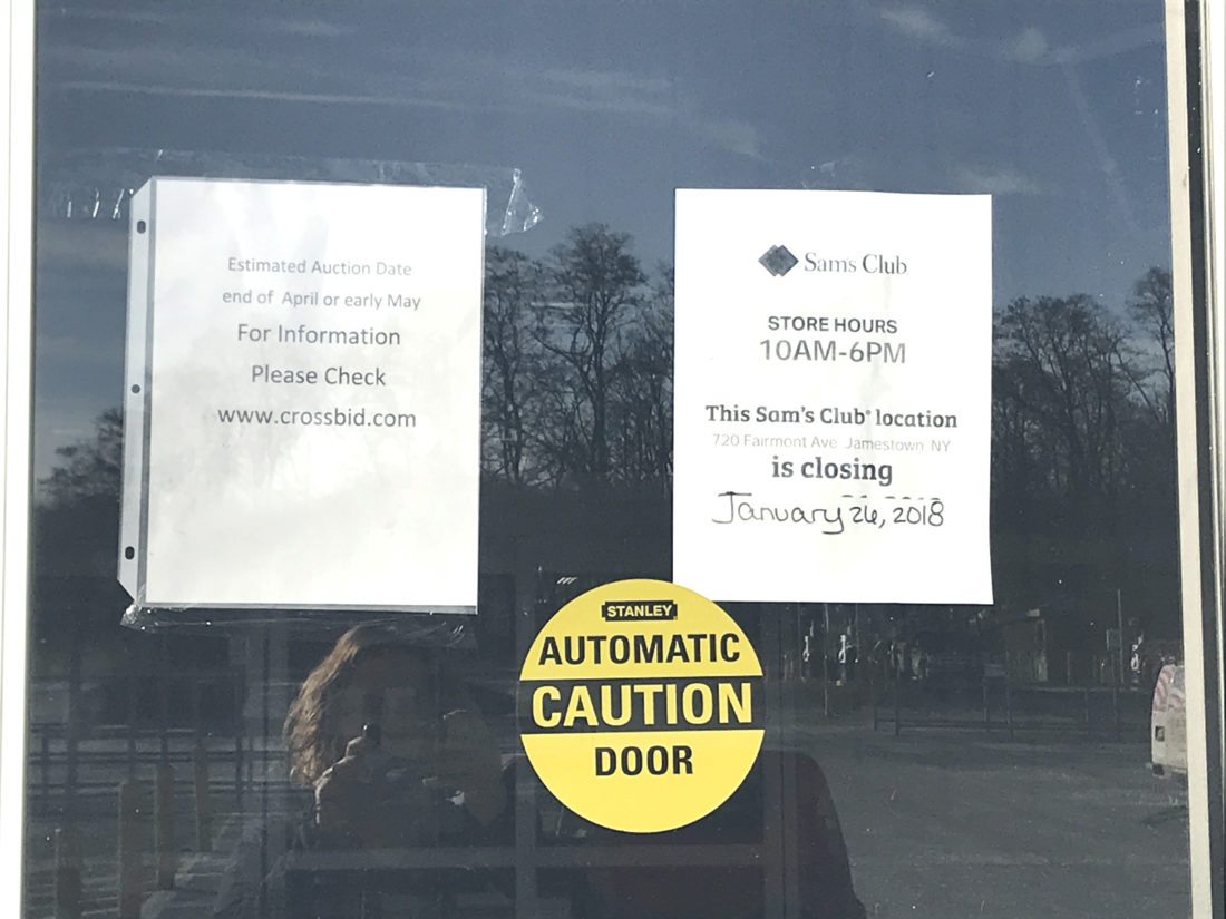 - Signs are posted on the front doors at Sam’s Club. An auction for equipment inside the store is scheduled to take place late April or early May. P-J photo by Katrina Fuller