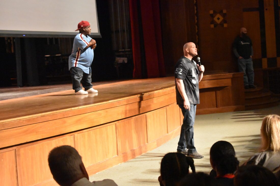 Hollyfield and Preston Centuolo, motivational speaker, visited various schools in the district to address bullying and self-improvement.
