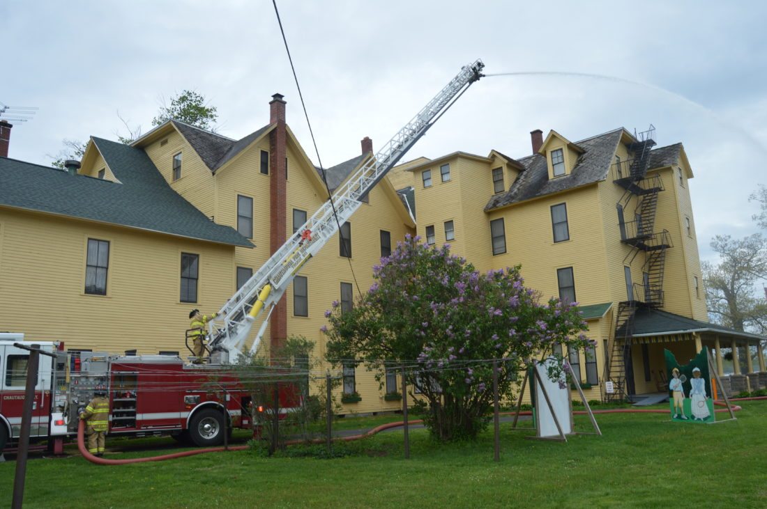 Jeff Molnar, second assistant chief with the Bemus Point Fire Department, said a lot of planning went into Saturday’s simulated fire. Fog was pumped into the upper floors of the iconic hotel that overlooks Bemus Bay on Chautauqua Lake while more than 20 people played the role of victims trapped in the building’s 53 rooms.