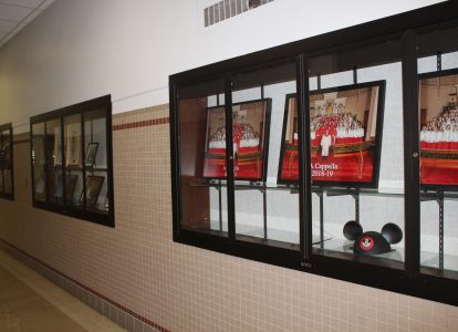 The halls of Jamestown High School outside of the choir room highlight the history of the A Cappella Choir, founded in 1924 by Ebba Goranson.