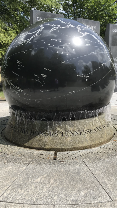 - This 16,000-pound black granite globe floats on a cushion of water at the World War II Memorial in Nashville. Photos by Beverly Kehe-Rowland