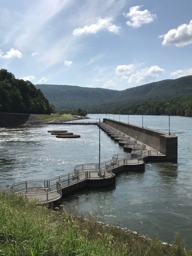 Traveling along the beautiful Tennessee River, about 15 minutes outside of downtown Chattanooga, we came upon Raccoon Mountain. When I first saw it, I thought it was just one more dam. Afterall, the Tennessee Valley Authority (TVA) logo was on the upper left corner of the sign and the TVA flag hung on the pole below the American flag. It was a logo we had seen at many dams on this trip. This site had two reservoirs. When there are times of little demand for power, water is pumped to a 107,000,000 gallon reservoir at the top of the overlooking mountain, a 28-hour process. When more power is needed, the stored water is released through a tunnel that was drilled through the mountain’s center. The force of the falling water powers generators in an underground power plant.