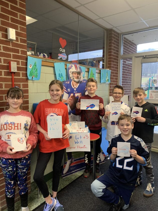 Bemus Point Elementary School is collecting “well wishes” from students for Buffalo Bills safety Damar Hamlin.
