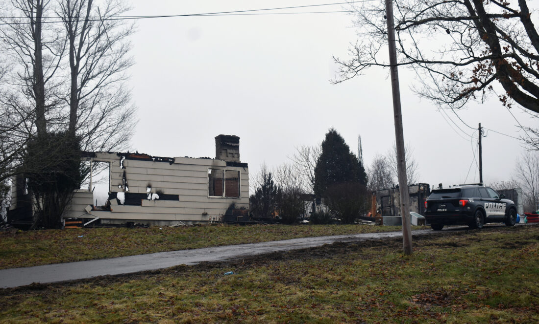 An Ellicott Police Department patrol vehicle is pictured Thursday morning at 3384 Moon Road in the town of Ellicott. Several volunteer departments assisted late Wednesday after a fire broke out. The property was destroyed as a result of the blaze. P-J photo by Eric Tichy