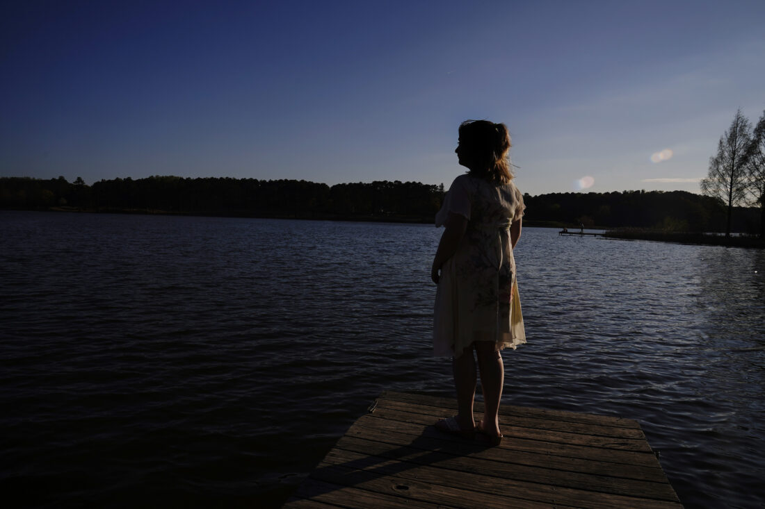 Emma, 18, stands for a portrait in Georgia on Thursday, March 23, 2023. The aspiring artist, with attention deficit disorder and occasional depression, says worries about academics and college are a huge source of stress. “Lately in myself and my friends, I realize how exhausted everyone is with the pressures of the world and the social issues and where they’re going to go in the future,” Emma added. ”All of these things pile up and crash down.” AP photos