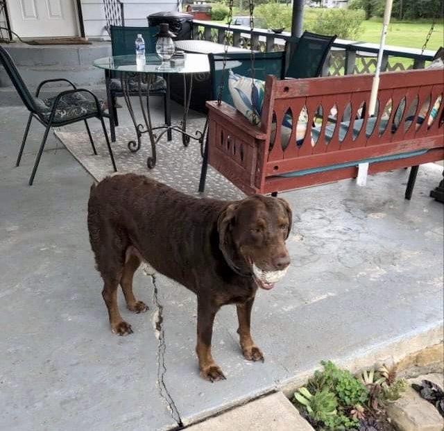 Pictured is Tucker, the chocolate lab mix who alerted his owners to someone near the creek Saturday. Submitted photo