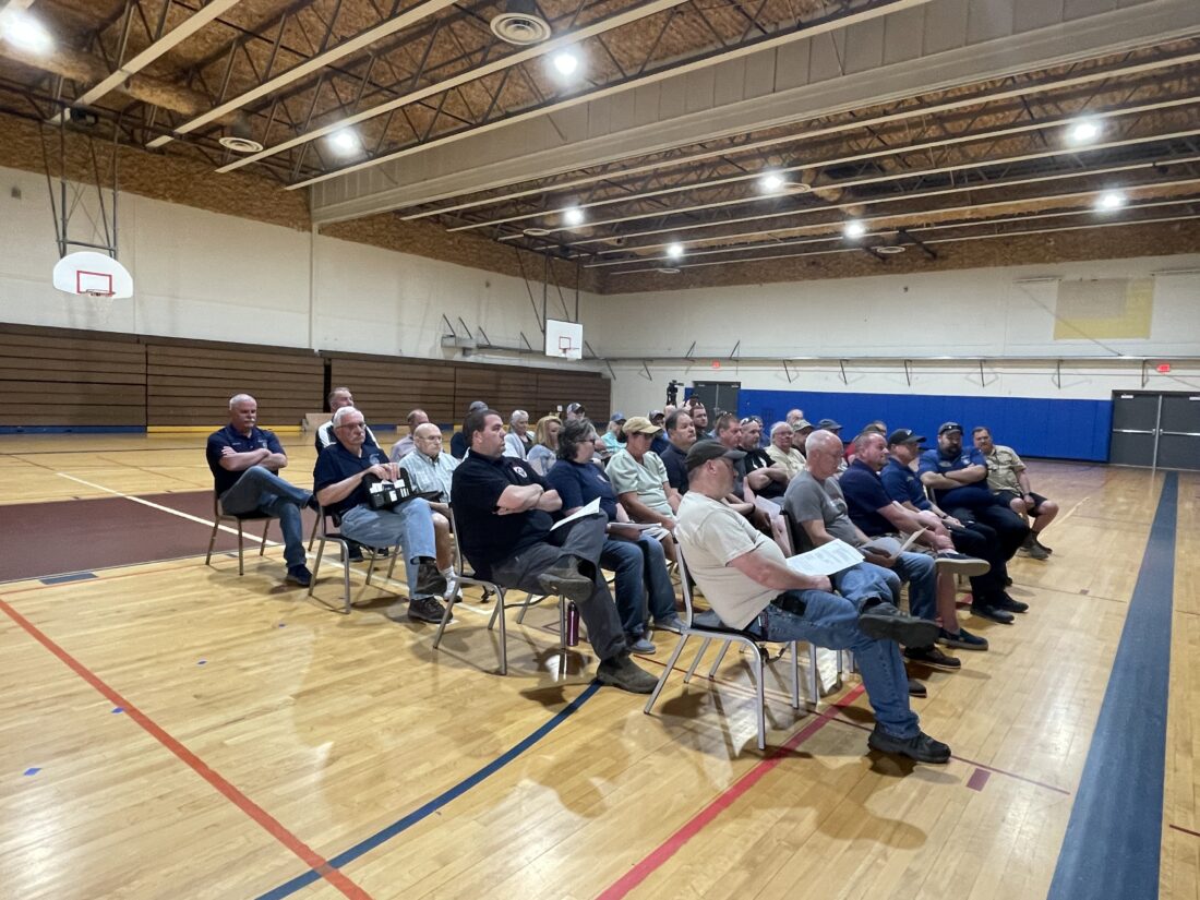 Members of the Mayville, Dewittville and Hartfield fire departments are pictured, along with other community members, who gathered to hear about the steps needed to merge the three fire departments.