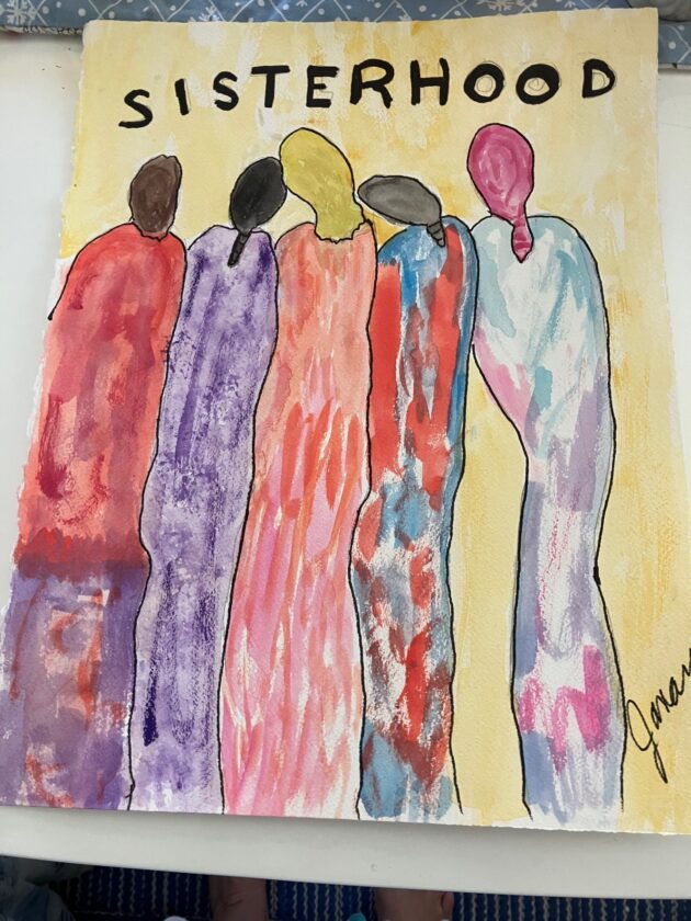 - One of Cosner’s watercolors, “Sisterhood”, based on one of her poems that showcases how women with breast cancer become a community after being diagnosed. Submitted photo