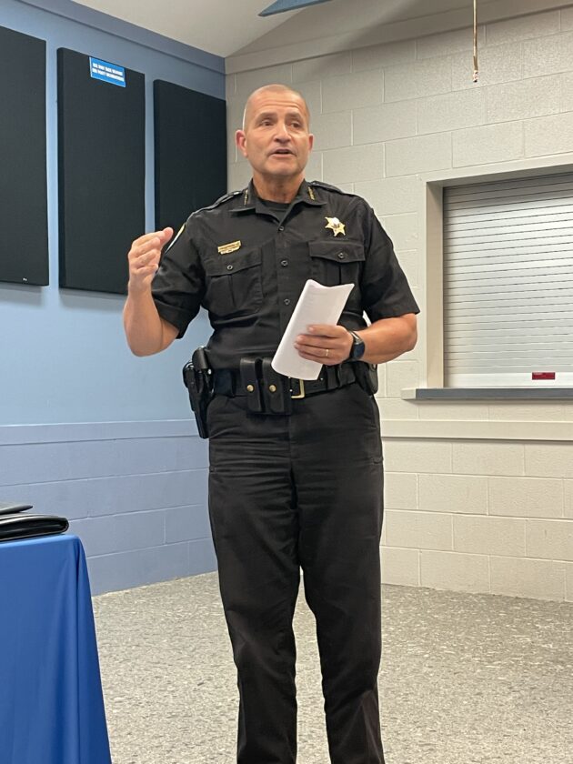Sheriff Jim Quattrone is pictured at the Mayville Village Board meeting where he gave an update on the re-entry hub. P-J photo by Gregory Bacon