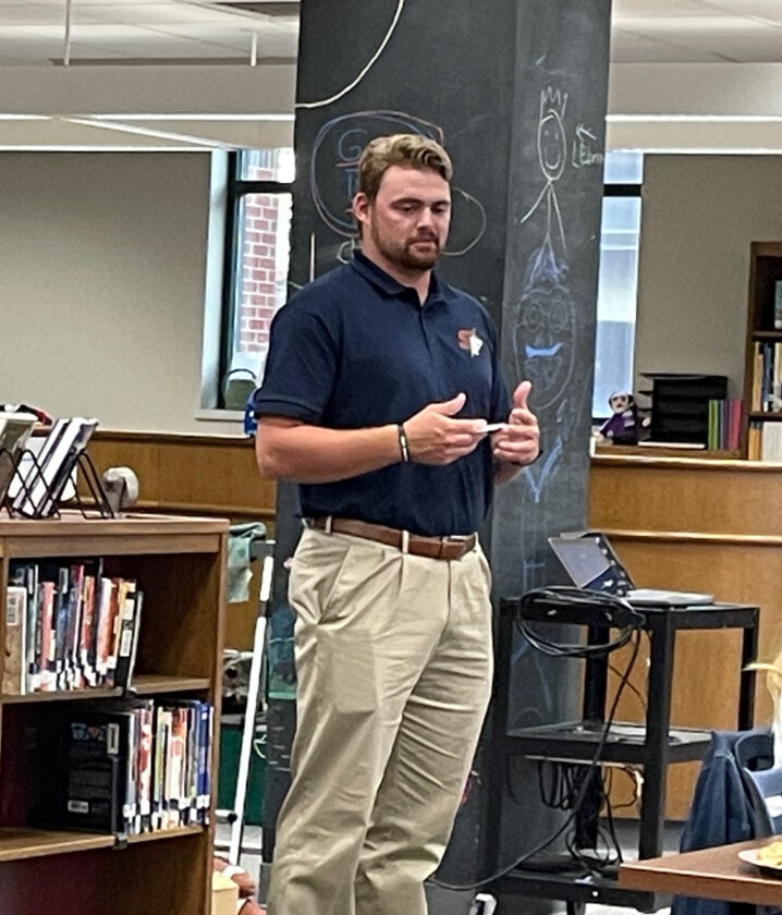 Frewsburg Girls Varsity Flag Football Coach Trent Gray gives an update Thursday to the school board.