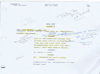 A Seinfeld script hand-annotated by Jerry Stiller is pictured.