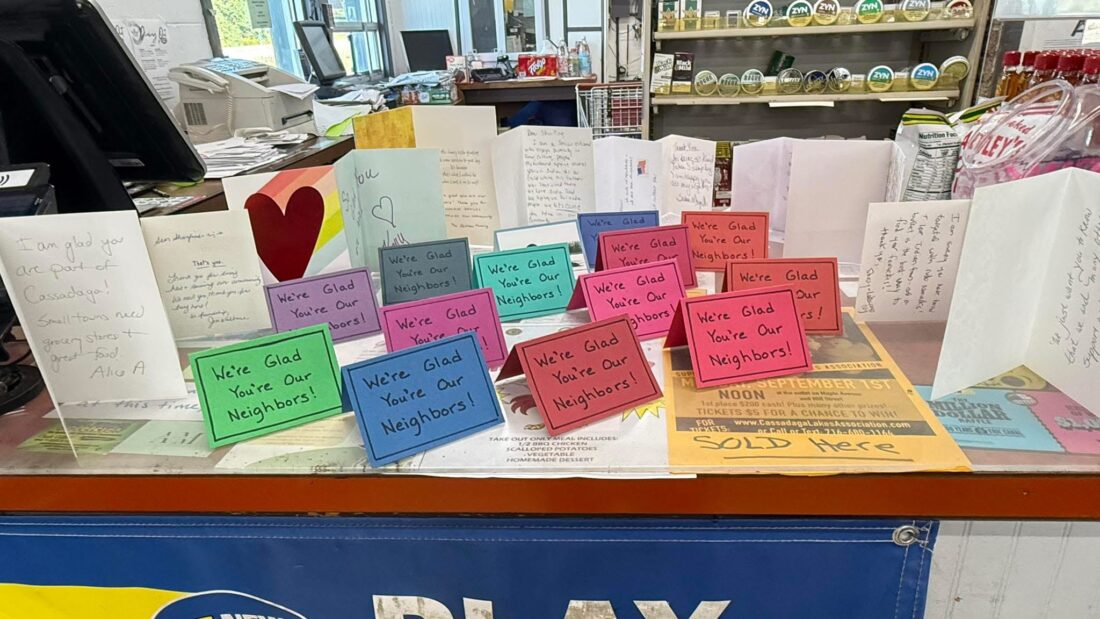 Pictured are cards of support from community members who have visited Cassadaga Shurfine following its Indian cuisine buffet being discontinued.