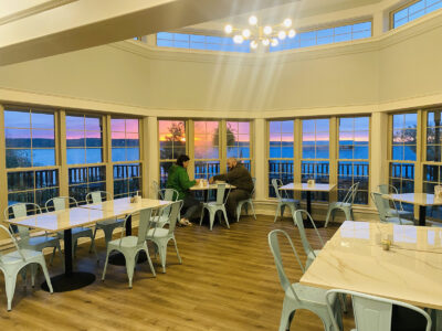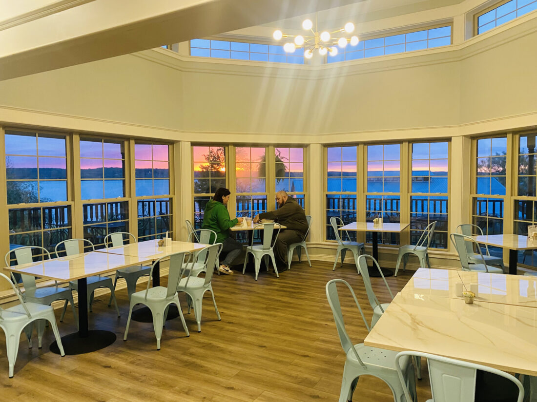 The restaurant boasts great views of Chautauqua Lake, and not far away there is a public dock for use during the warmer months, and snowmobile trails for use during the colder months, so it can be a year-round place of gathering.