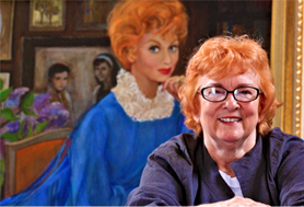 Wanda Clark, Lucille Ball’s former personal secretary, is pictured with a painting of Lucille Ball during one of her visits to Jamestown. Photo courtesy Lucille Ball-Desi Arnaz Museum