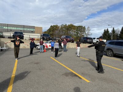 Deputy Phil Lombardo directs three students that are performing field sobriety tests.