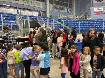 Children arriving at Northwest Arena, awaiting the beginning of Sapp’s speech.