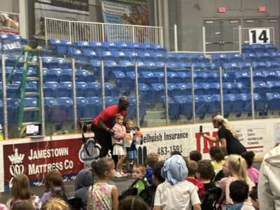 - Children learning about Chautauqua Striders, one of the organizations set up for tabling before the speech from Sapp began.