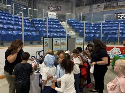 Children learning about Chautauqua Striders, one of the organizations set up for tabling before the speech from Sapp began.