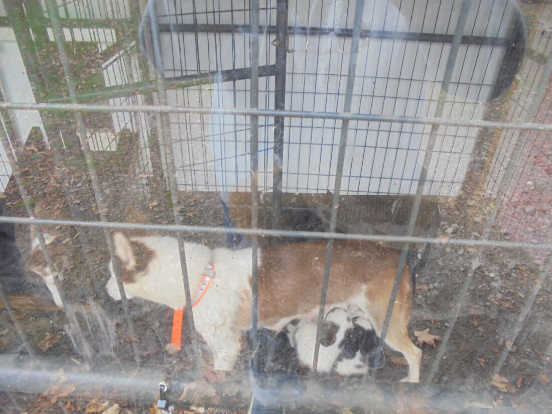 The mother dog takes care of her puppies inside Constantino’s kennel, which is now full. P-J photo by Sara Holthouse