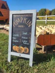 A sign advertising pumpkins for sale earlier this fall is pictured at Pumpkintown.