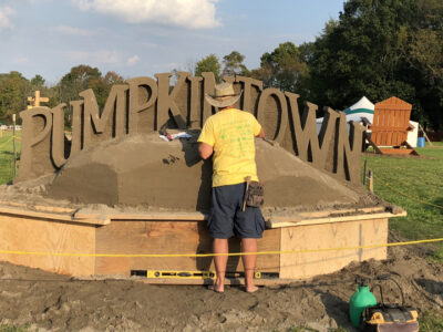 - Todd Pangborn is pictured creating a Pumpkintown sand sculpture in 2019 at the Busti attraction.