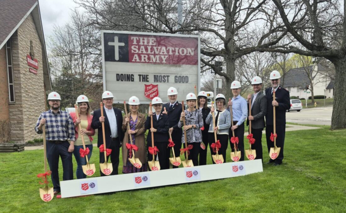 Salvation Army of Jamestown’s board members and leaders conduct a ceremonial groundbreaking in April at the army’s main building, 83 S. Main St., in honor of the start of construction of a new, Anew Domestic Violence Shelter. P-J file photo