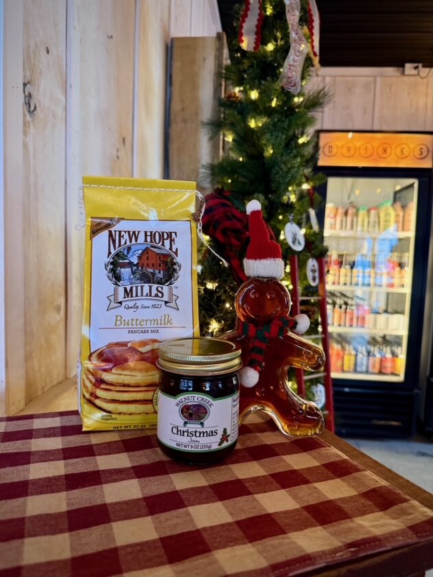 The country store offers a variety of products, including some that are not usually found in this area, for example some jarred goods like candied jalapenos, pickled okra, baby beets and red onions. An assortment of relishes, mustards, seasonings and rubs are offered, along with at least six flavors of New Hope Mills pancake mixes.