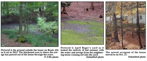 “He moved in in October,” Rager said. “We spoke with code enforcement officer Jeff Messenger on Friday. We got in touch with the Health Department. We went to the town meeting to tell them this was happening. I have an autoimmune disease and this water from the house is now coming right towards us, as the barrel that used to be there isn’t there anymore.”