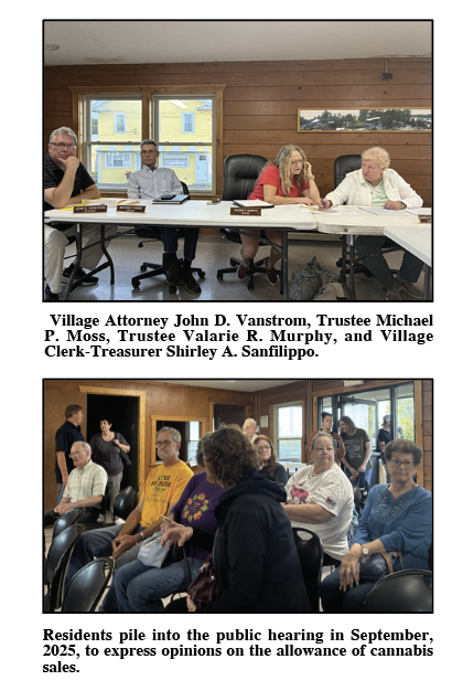 The board hosted a packed public hearing in September 2025. In the ensuing months, village officials have been deciding whether or not to rescind a local law that was implemented in 2021 when the state opened a window for local governments to decide whether or not to allow cannabis sales and consumption.