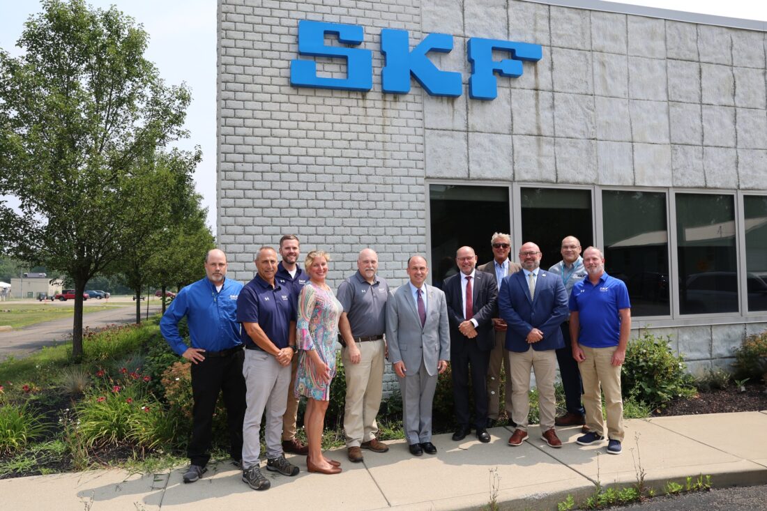 Rep. Nick Langworthy, Swedish Ambassador Urban Ahlin, County Executive PJ Wendel, county officials and SKF employees in Falconer are pictured during a stop on Ahlin’s tour of the area in August. Photo courtesy Congressman Nick Langworthy’s Facebook page